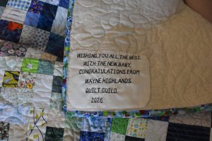 Locally, the Wayne Highlands Quilt Guild presents the first baby born at WMH on or closest to the day with a handmade quilt. The family from Forest City, little Aria along with her parents Elizabeth and Kyle, received a lovely quilt with a wildflower motif celebrating the occasion. It was presented by Guild representative Sherry Milliken who was so pleased to hear, “the theme of Aria’s bedroom is wildflowers.”