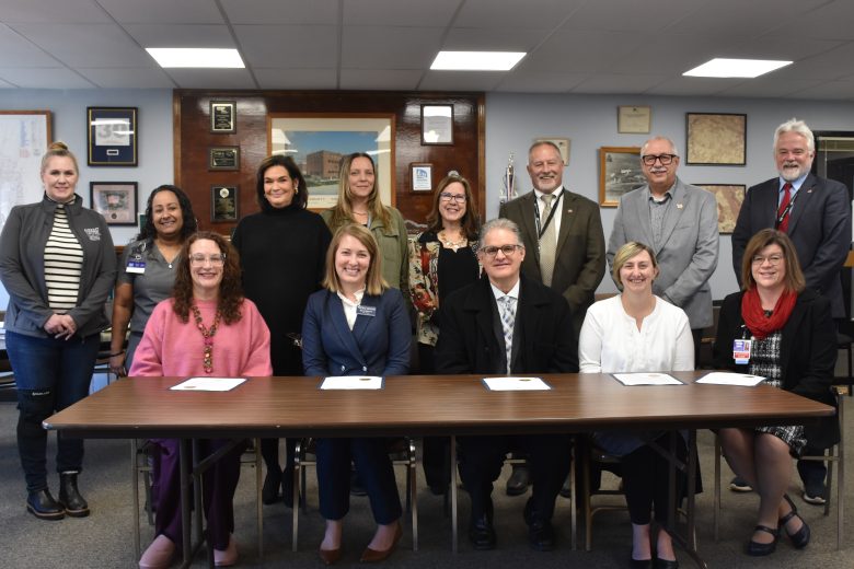 Standing: Program Director at TWC Hawley, Allison Miller CRNP – FNP-C, Site Coordinator TWC Hawley Lida Kiefer, Executive Director of Public Affairs, TWC, Kara Seitzinger, Manager of Enterprise Trauma-Competent Wellness Initiatives Shannon Osborne, Wayne County Commissioners Jocelyn Cramer and Brian Smith, Chairman, WMH Chief of Professional and Ancillary Services Jim Hockenbury MHA, ACHE, and Wayne County Commissioner Jim Shook.
